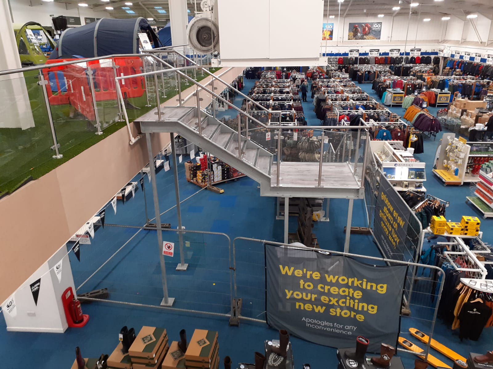 We have completed nationwide works for GO Outdoors, including the installation of new mezzanines, mezzanine extensions, new staircases and handrail , some projects delivered while stores remained open and trading, with minimal disruption and a strong focus on safety and efficiency.